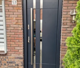 Bezpieczne wejście do Twojego domu. Oferujemy drzwi o wysokich parametrach izolacyjnych, które łączą nowoczesną estetykę z odpornością na wymagające warunki pogodowe.
